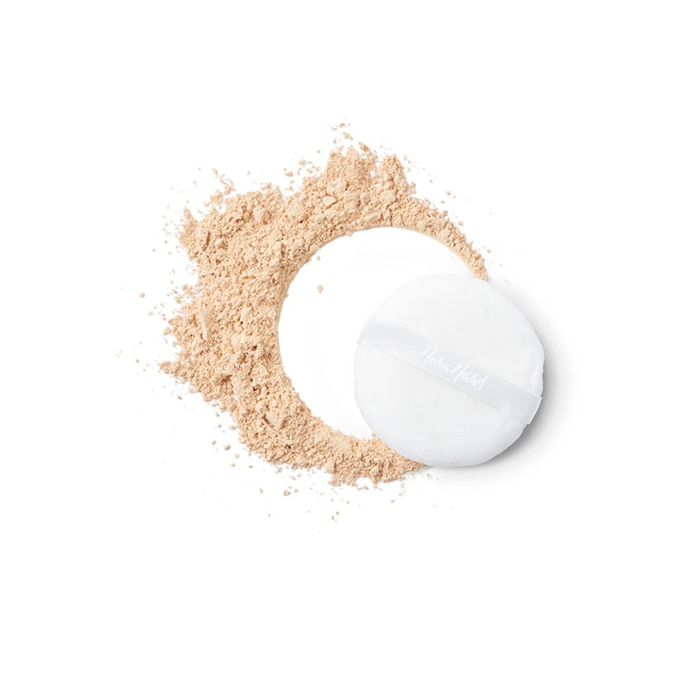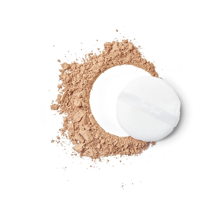 - استعملي الإسفنجة الموجودة في العلبة وابدأي بتطبيق البودرة على الجبين والأنف والخدين والذقن وامزجيها بالكامل باستخدام ضربات خفيفة للأسفل.